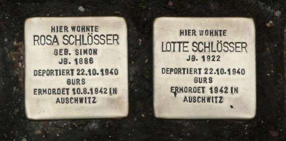 Am 22. Oktober 1940 wurden Rosa Schlösser und ihre 18 Jahre alte Tochter Lotte, geb. 1922, nach Gurs deportiert.