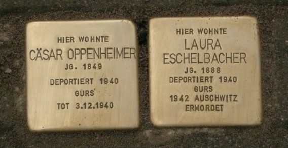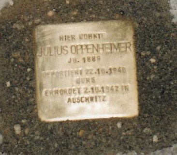 Julius Oppenheimer wurde am 22.10.1940 in das Lager Gurs deportiert, dessen Schrecken er überlebte. Aus den Berichten des überlebenden Oskar Althausen, der in derselben Baracke lebte, geht hervor, dass Louis und Julius Oppenheimer im Winter 1940/41 oft um den sogenannten „kalten Ofen“ herumstanden und in ihrer Sehnsucht nach der Heimat deutsche Heimatlieder sangen. Sie stritten sich sogar darum, wer sie „wenn Hitler einmal kaputt ist“ am Bahnhof empfangen würde, welche Kapelle wohl spielen würde, die der Feuerwehr oder eine andere.