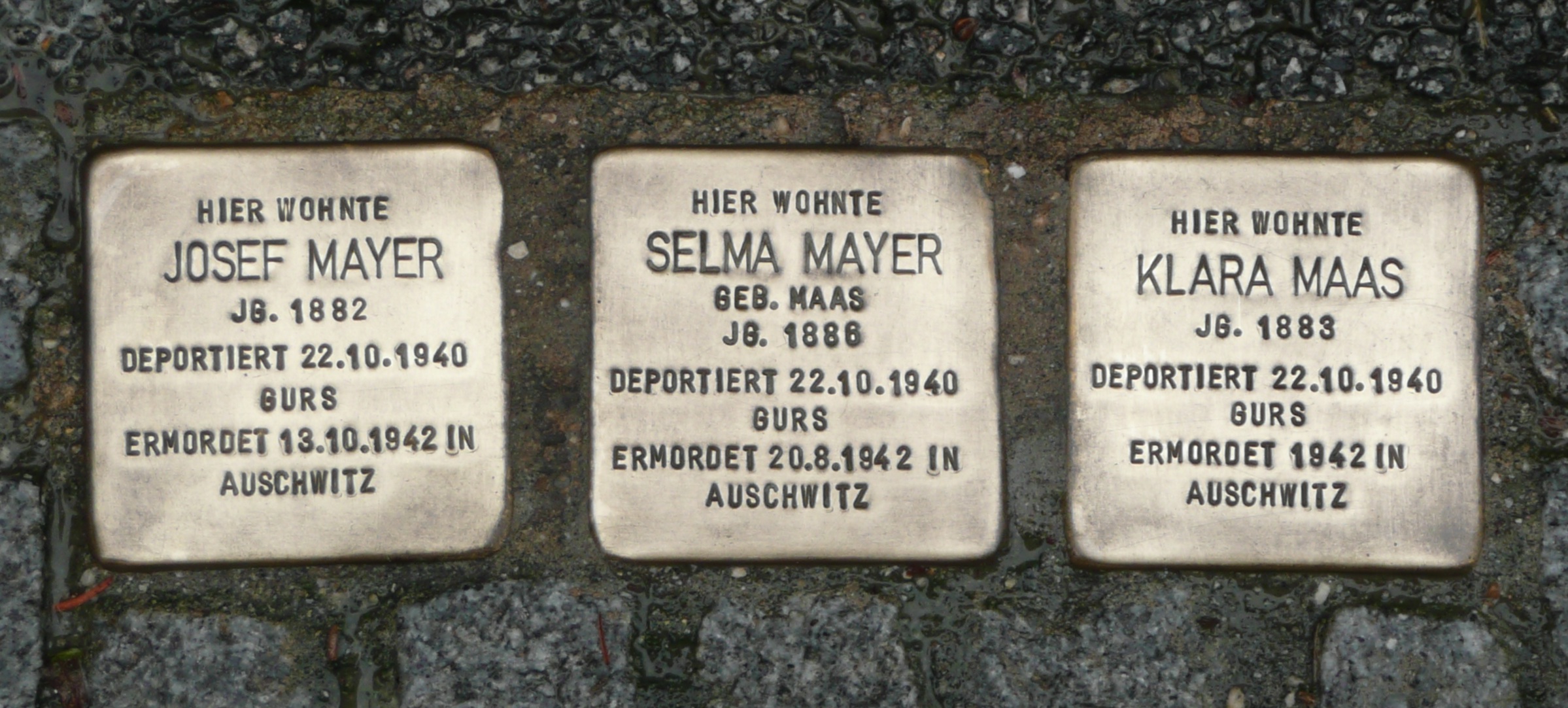 Mit dem ersten so genannten Convoy am 6, August 1942, der 1000 Menschen aus dem Lager Gurs ins Lager Drancy und von dort am 10. 8. 1942 in das Vernichtungslager Auschwitz transportiert hat, mussten auch Selma und Josef Mayer diese entsetzliche Fahrt in den Tod erleiden. Selma war 56 , ihr Mann Josef 59 Jahre alt.