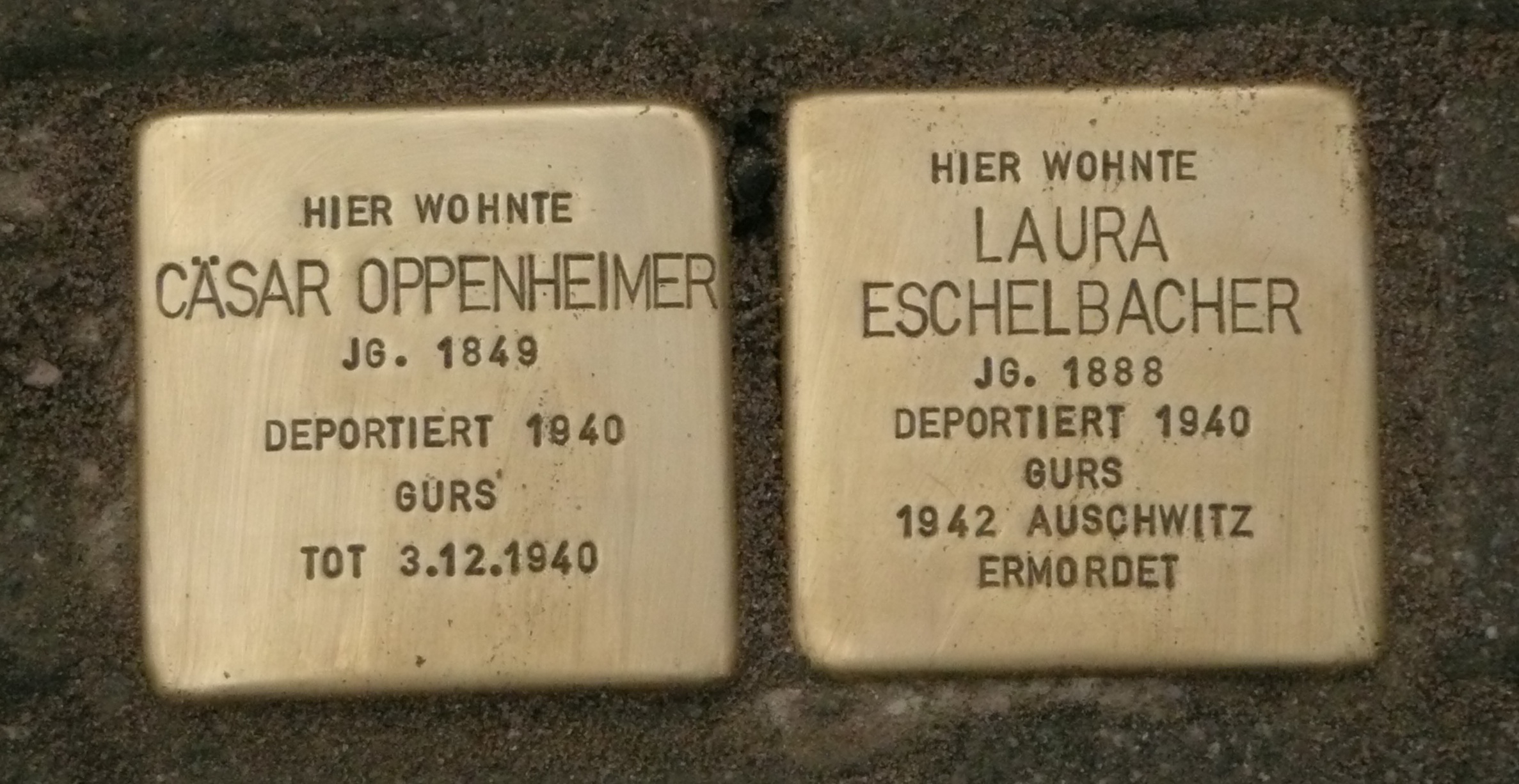 Die letzte "Stütze" war Laura Eschelbacher aus Neckarbischofsheim, geboren 1888, die vom 28.7.1939 bis zur Deportation am 22. Oktober 1940 hier bei Cäsar Oppenheimer wohnte. An diesem Tag wurde er im Alter von 91 Jahren aus seinem Haus geprügelt, zum Rathaus geschleppt und ebenso wie Laura Eschelbacher nach Gurs deportiert. Dort starb er in Kälte, Dreck, Hunger und Elend am 3.12.1940.